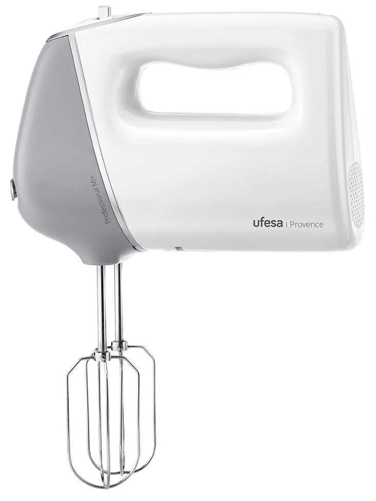 BATIDORA UFESA AMASADORA MANO 600W 5 VELOCIDADES + TURBO PARA PREPARAR TODO TIPO DE MEZCLAS 2 VARILLAS IDEAL PARA TEXTURAS MÁS ESPESAS COMO MASAS 2 VARILLAS BATIDORA UFESAS DE ACERO INOX. IDEAL PARA PREPARAR MEZCLAS SUAVES COMO PASTELES 3 FUNCIONES: BA
