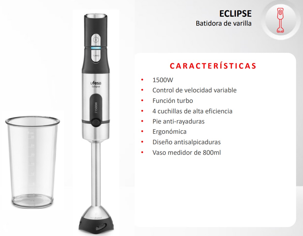 BATIDORA UFESA C.M.1500W ECLIPSE FUNCIÓN TURBO 4 CUCHILLAS DE ALTA EFICIENCIA ERGONÓMICA DISEÑO ANTI SALPICADURAS VASO MEDIDOR