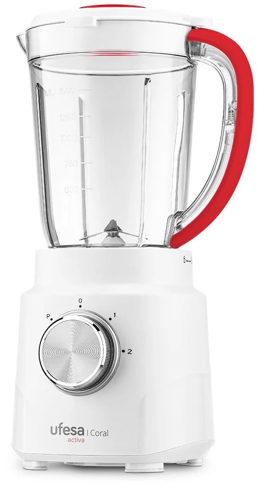 BATIDORA UFESA VASO 1,5L 600W BLANCA TAPA CON CIERRE HERMÉTICO CON APERTURA PARA INTRODUCIR ALIMENTOS 2 VELOCIDADES + TURBO 4 CUCHILLAS EXTRAÍBLES DE ACERO INOXIDABLE BLOQUEO DE SEGURIDAD JARRA APTA PARA LAVAVAJILLAS PIES ANTIDESLIZANTES PROTECCIÓN