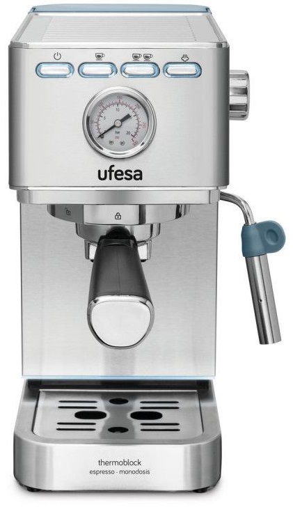 CAFETERA UFESA EXPRESS 20 BARES· 1 O 2 TAZAS DE CAFÉ. CAPPUCCINO · SISTEMA DE CALENTAMIENTO: THERMOBLOCK · MANÓMETRO · DEPÓSITO DE AGUA EXTRAÍBLE DE 1.4L · SISTEMA TRADICIONAL CON CAFÉ MOLIDO · SISTEMA DE MONODOSIS · PORTAFILTRO METÁLICO CON 3 F